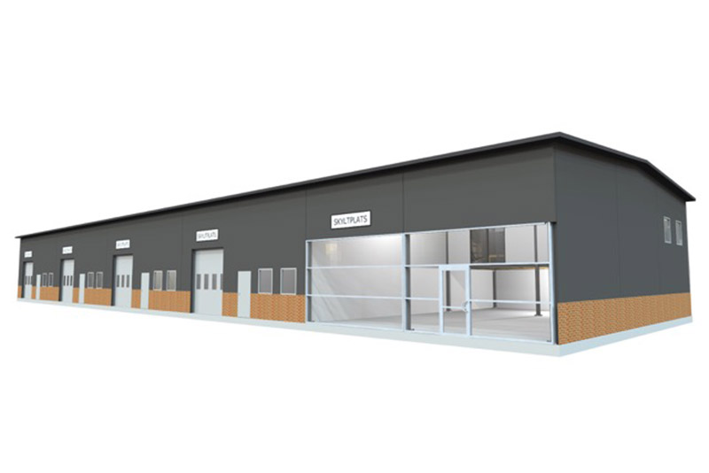 Byggnad 1: Innehåller Industriradhus om ca 160m2 vilket omfattar entreplan om ca 100m2 och entresol om ca 60 m2. Lokalen är utrustad med oljeavskiljare, stora portar, WC/dusch, pentry, modern teknik och takhöjder på ca 8 meter. Du kan välja fler radhus för ökad yta.